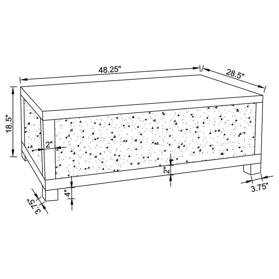This 48-inch rectangular mirrored coffee table is the perfect centerpiece for a glam living room. Designed with an engineered wood frame, it features fully mirrored surfaces that reflect light beautifully, while acrylic crystal accents provide dazzling sparkle. Its clean-lined, modern silhouette blends function with glamorous sophistication, ideal for hosting or showcasing decor.