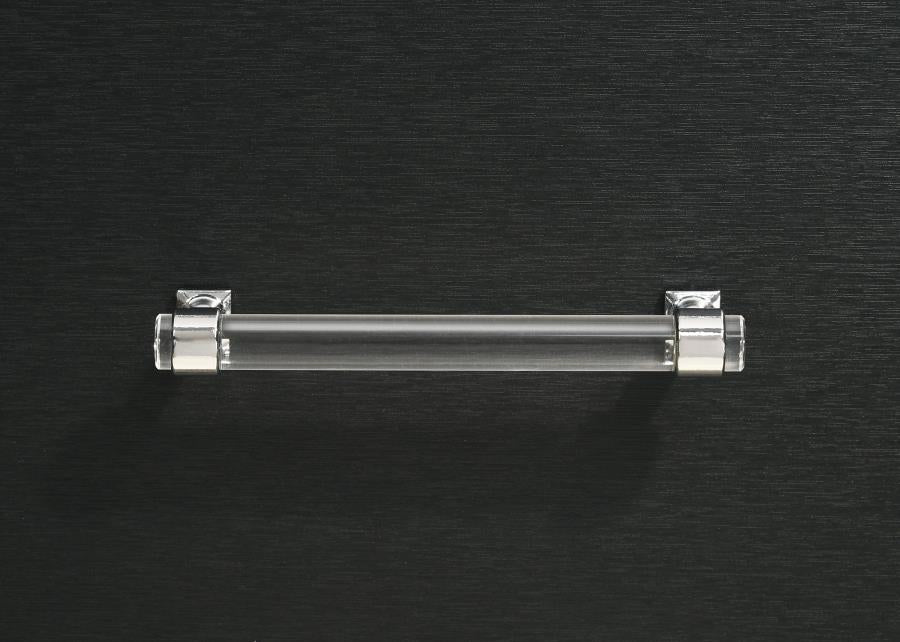 Inspired vintage touches create a refined sensibility for a modern five-drawer chest. Its tall, compact profile is ideal for a dressing area, offering plenty of storage with five roomy drawers that host everything from clothing and accessories to linens and other personal effects. The chest shows off a bold black finish, complete with gleaming chrome trim that adds coolness and elegance. Its long bar drawer pulls add character, while hair pin inspired legs bring retro glamour and sophistication. Add decor to the top for a personal touch in your bedroom.