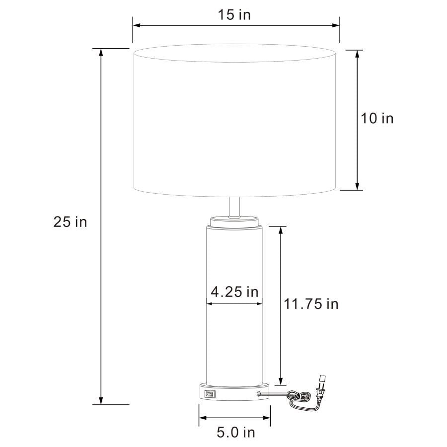 Classic luxury meets modern in a charming table lamp built for a sophisticated living space. A white marble column centers the lamp, offering luxe energy and appeal in any setting, from a nightstand to a server and beyond. Soft gold accents enhance the lamp with hints of warmth. A textured white drum shade sits on top for true, diffused illumination from an included 9W LED bulb that's energy efficient. A clever USB port is built into the base of the lamp, easily turned to the wall for a seamless look while providing easy access to charge your electronics in a modern living area or bedroom.