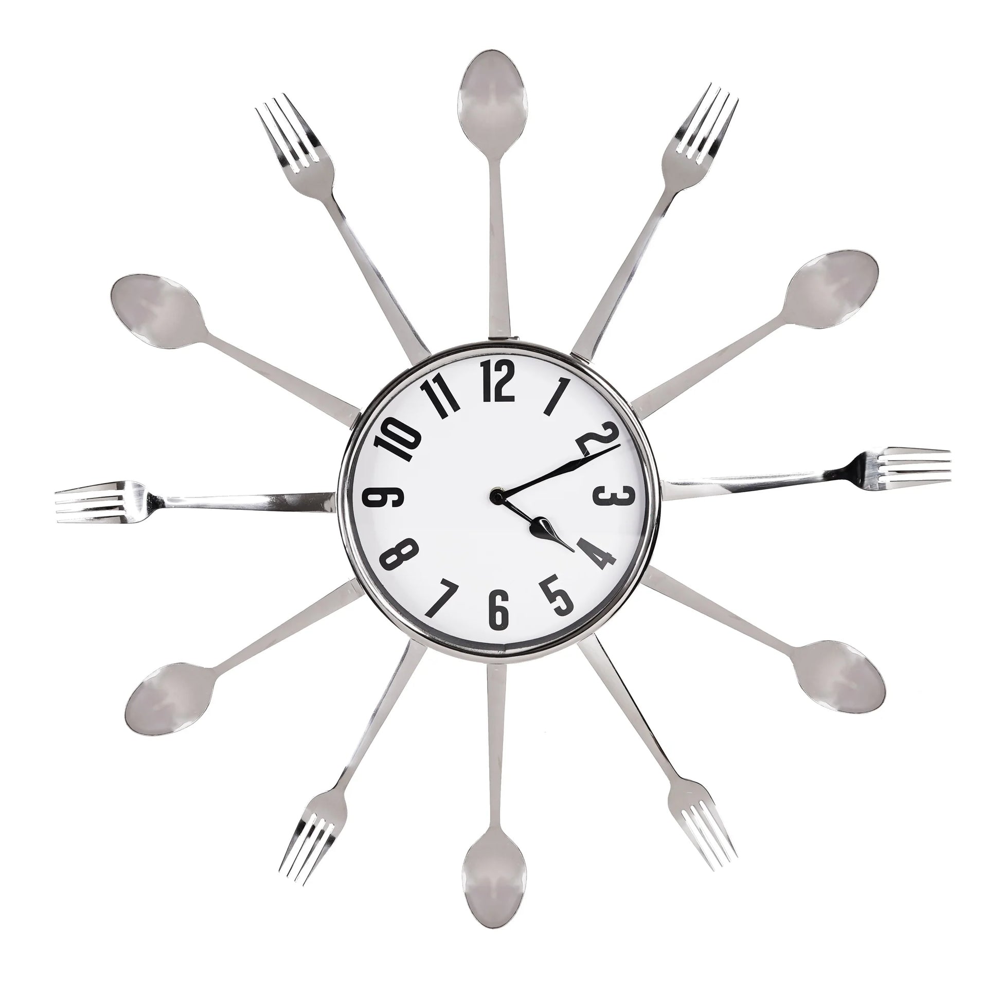 It's dinner time! Stainless steel utensil wall clock adds a fun touch to any decor in your kitchen. Spoon and fork detail 22'' clock.